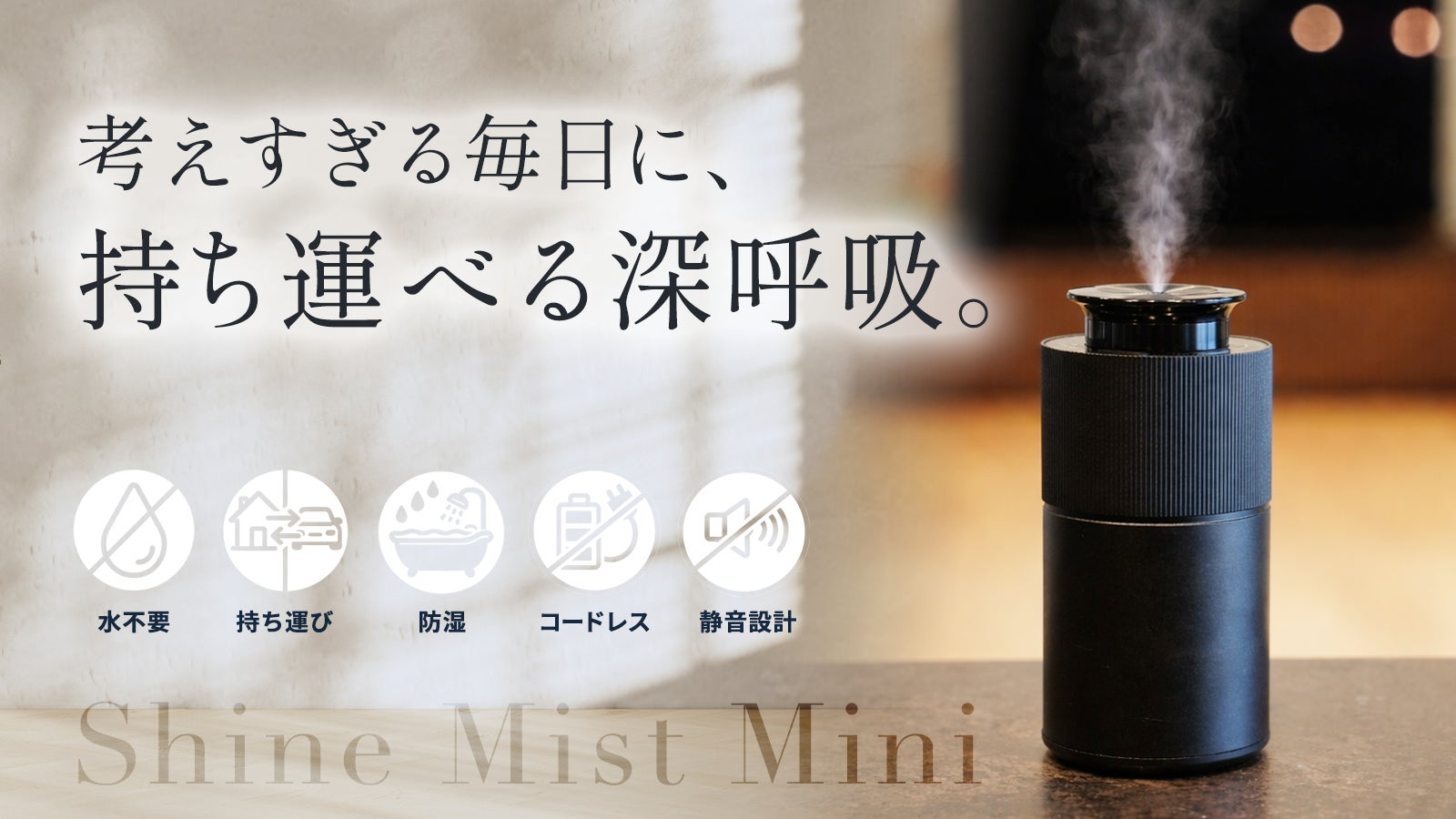 【場所を選ばない】防湿設計で浴室から車まで使える。水不要のスマートディフューザー