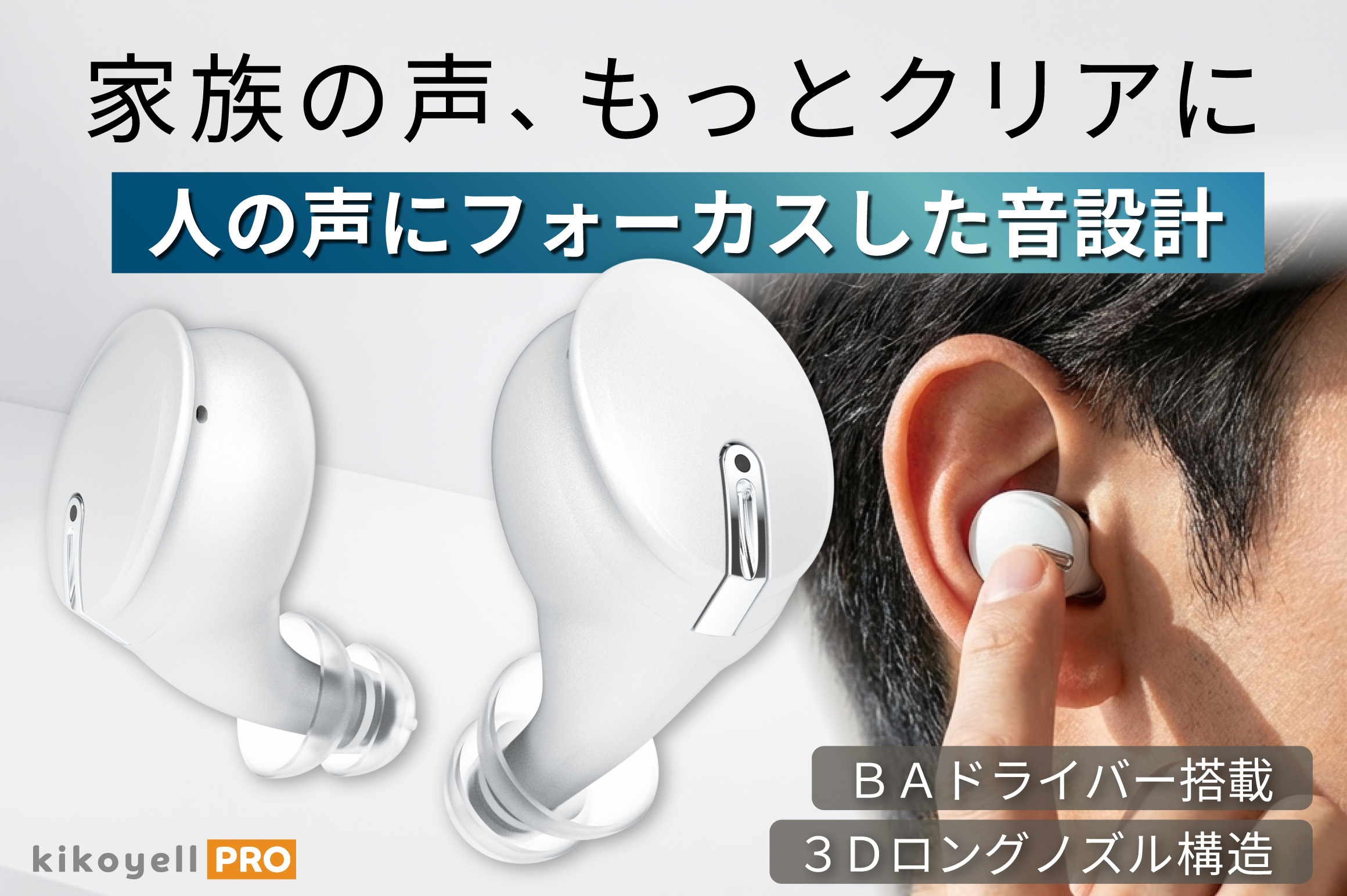 音量では解決しない聞こえづらさに、答えを。 “言葉”をはっきりさせる新構造のワイヤレスイヤホン機能付き集音器 人の声の再生に強いBAドライバー搭載「kikoyell (きこエール) PRO」