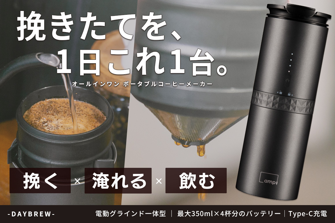 1杯じゃ、足りない。1日ずっと挽きたてを、これ1つで。|電動ミル・ステンレスフィルター・真空二重マグを一体化したオールインワンコーヒーメーカー【DAYBREW|デイブリュー】