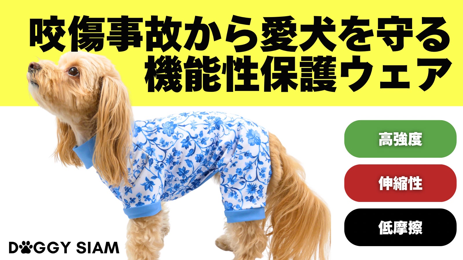 不慮の事故から大切な生命を守りたい。"家族の一員"に送る愛犬用機能性保護ウェア