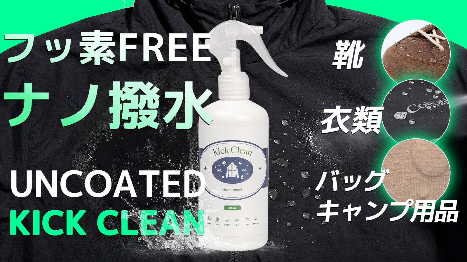 スプレーするだけ。フッ素フリーの撥水ナノコーティング KICK CLEAN
