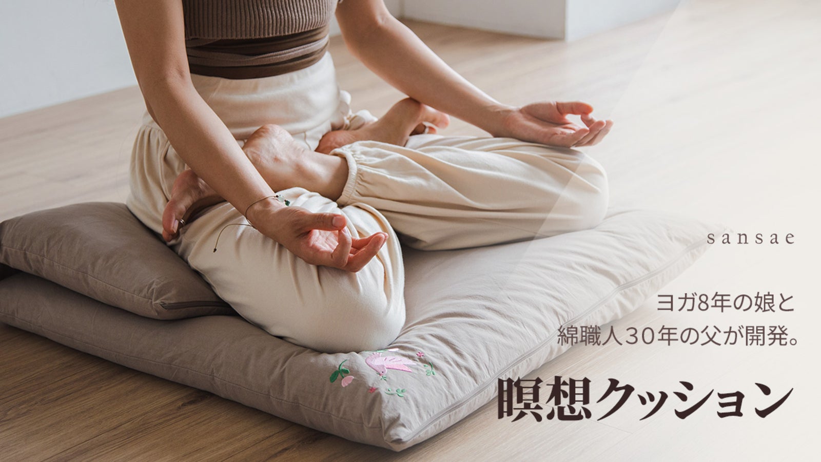 背もたれにもなる2段設計。 快適な座り心地の綿製瞑想クッション「sansae」