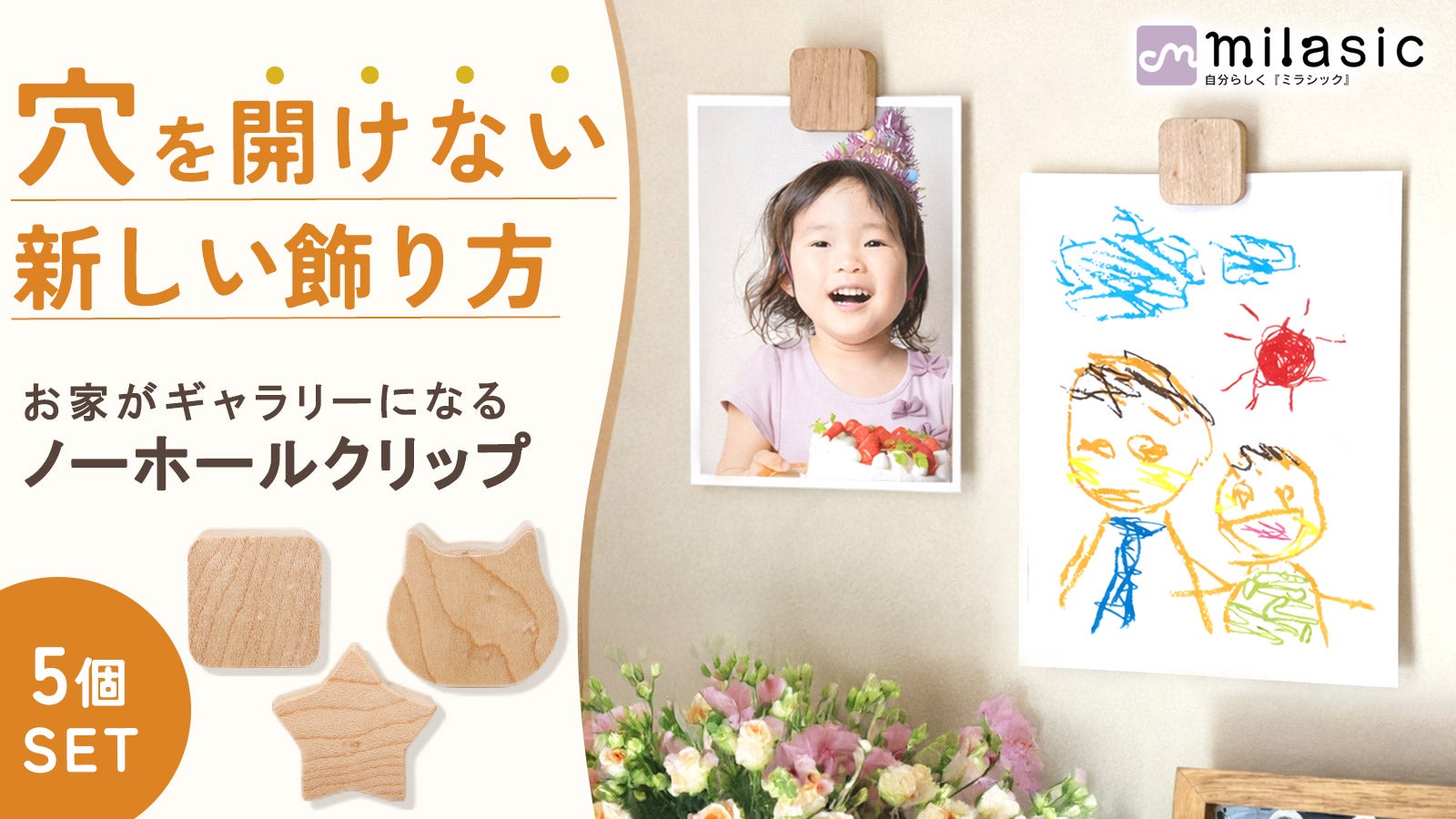 穴あけ不要で賃貸もOK!画鋲いらずで壁がギャラリーに【ノーホールクリップ】