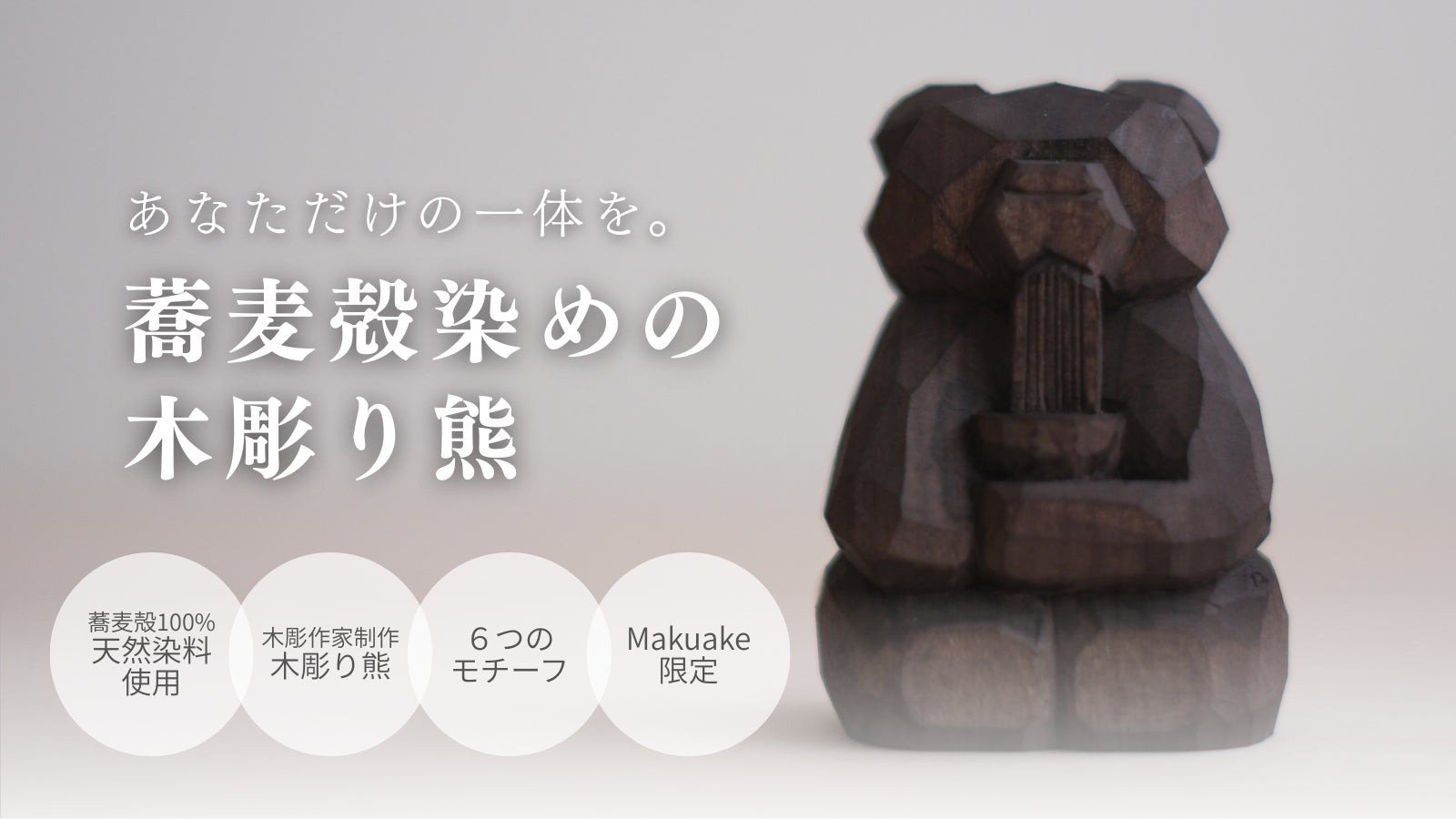 いま注目の若手木彫作家が作る!一点物の木彫り熊×蕎麦殻染めを全国にお届けします!